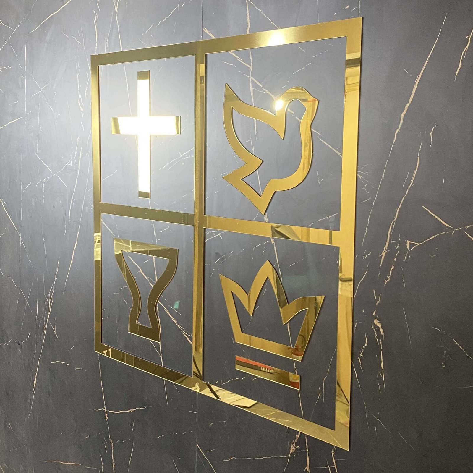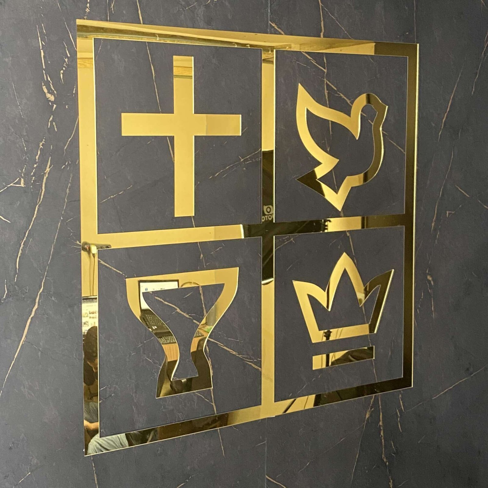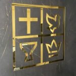 Símbolo Quadrangular em Acrílico espelhado nas cores dourada ou prateada, para Igrejas e Altares Quadragular. Uma obra-prima exclusiva da Fábrica Púlpitos Betel.